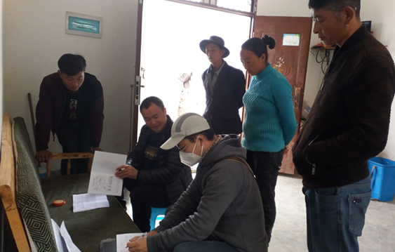 在完成培训并明确工作要求之后,工作小组针对学院帮扶对象开展逐一入户调查,具体包括:完善帮扶工作手册;填写帮扶成效和规范填写收支台账;汇总多项家庭经济指标数据;核查贫困户人口动态变更情况,并整理成电子文档等。在调研过程中,黄主席与贫困家庭亲切交流,了解村民家庭情况,掌握收入数据,并耐心讲解国家扶贫政策和帮扶措施,鼓励贫困户增强信心,开创增收渠道。