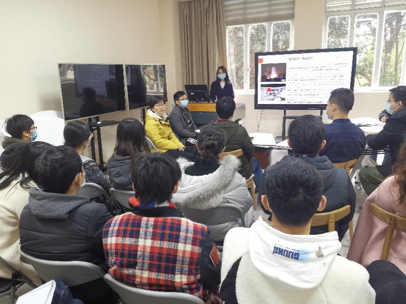 简单开场后,分享人陶艳以四个季度为时间线,向同志们梳理了2020年的时政热点,其中既包括习近平总书记在北京考察新冠肺炎防控科研攻关工作,也有习近平总书记在京出席决战决胜脱贫攻坚座谈会并发表重要讲话,还有“嫦娥五号”成功发射、《民法典》颁布、中美贸易战等今年人们十分关注的事件。