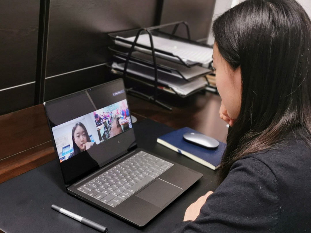 4日下午,屏幕另一端的邓靖微精心准备了学院宣传片《智电中国、创新未来》,为孩子们生动展现了四川大学学生的日常学习生活,以及作为英国上市公司365一名学生积极投身学习科研、实习实践的全部过程。