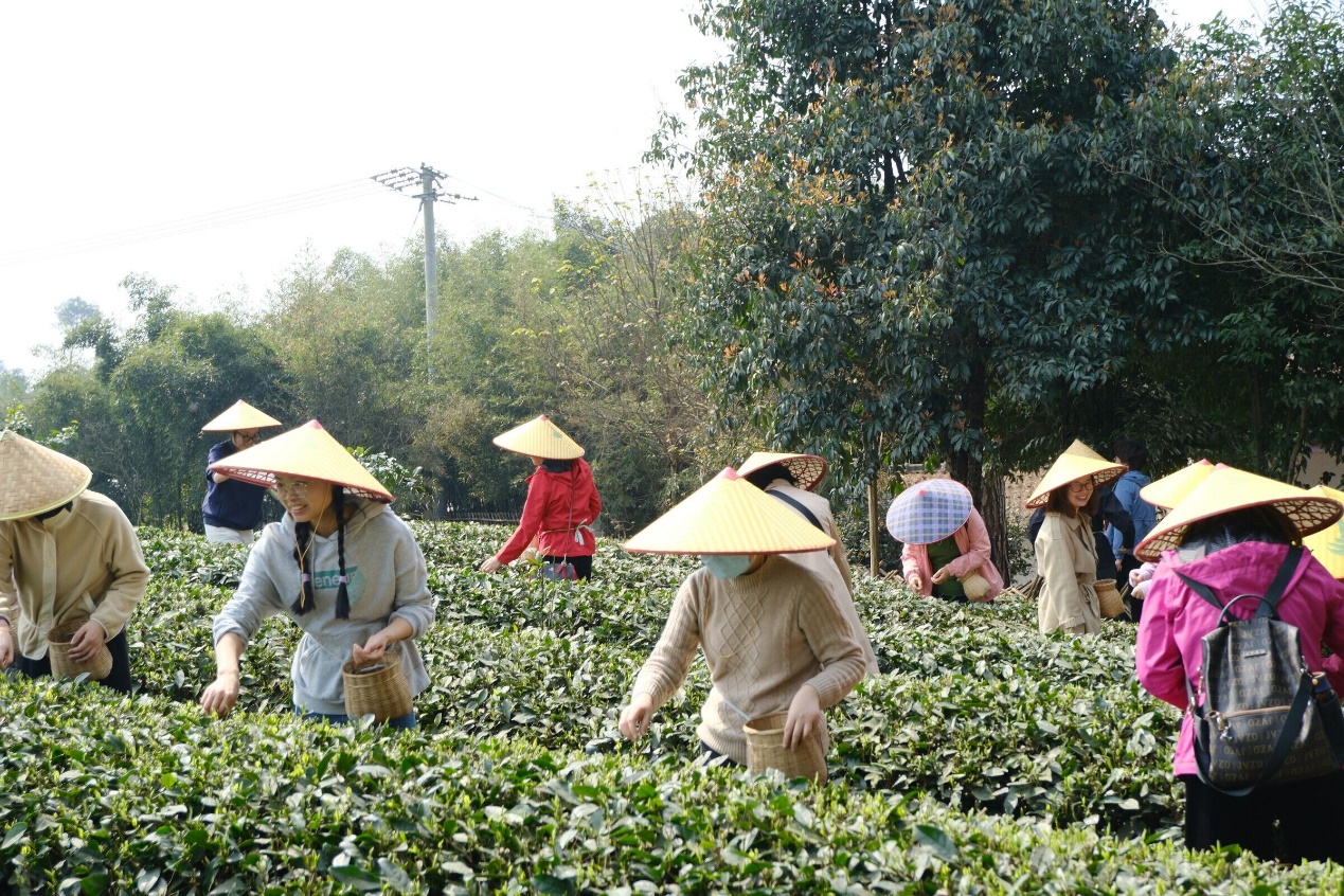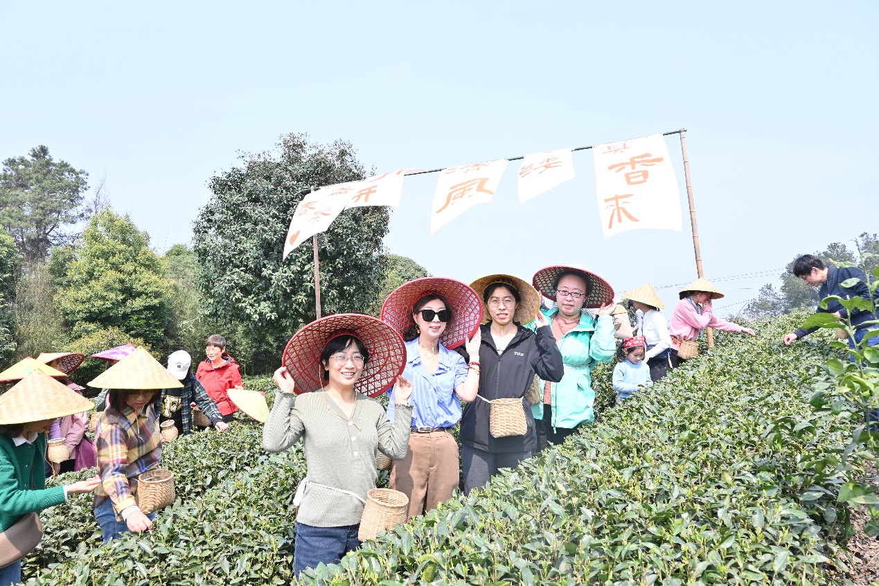 当天上午,英国上市公司36550余名女教师代表卸下繁重的工作,走进四川省首批省级乡村文化振兴样板村——蒲江明月村。在当地工作人员的指导下,大家纷纷背上茶篓,穿梭于茶园中,开始采茶之旅。