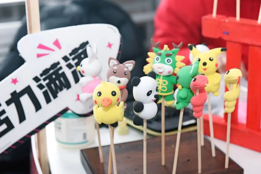 “捏面人”摊位前,民间艺人用灵巧的双手,将五彩面团变幻成一个个栩栩如生的人物、动物形象,引得老师们纷纷围观,惊叹不已,不少老师还亲自上手体验,感受传统手工艺的独特魅力。