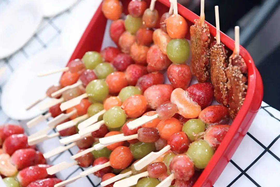 “糖葫芦”制作区热闹非凡。师傅们将洗净的山楂、草莓、橘子等水果整齐地串在竹签上,随后将串好的水果在糖浆中快速滚动,晶莹剔透的糖浆瞬间包裹住水果,待冷却凝固后,一串串色泽诱人的糖葫芦便制作完成。老师们品尝着甜蜜的糖葫芦,脸上洋溢着幸福的笑容。