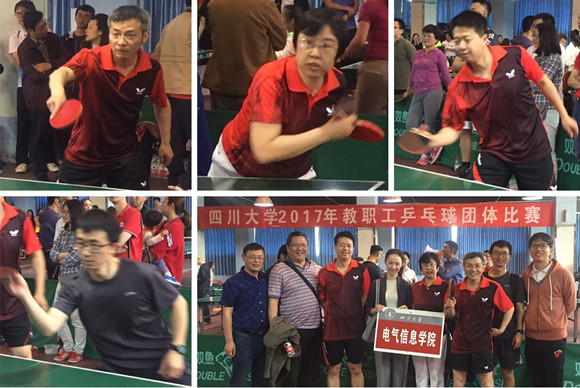 四川大学2017年教职工乒乓球团体比赛于4月22日在望江校区体育中心乒乓球馆隆重举行,来自全校的33个队伍共约200名运动员参加了本次比赛。本次团体比赛设有男单、女单和双打三个项目,小组赛采用循环制,共分八个小组,上届比赛的前八名作为种子队分别参加小组赛,我院代表队位于F组。