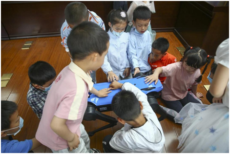 在能源互联网实验室,师生志愿者们对智能机器人的相关知识进行了介绍,随后进行了智能机器狗Mini的现场表演,最后孩子们还亲身体验操控机器狗,亲身感受人工智能的魅力。通过简单生动的讲解,小朋友们理解了机器人的结构和工作原理。随后在欢乐的氛围中,孩子们依次体验了操作机器人的乐趣,潜移默化的激发了科学兴趣和思维。