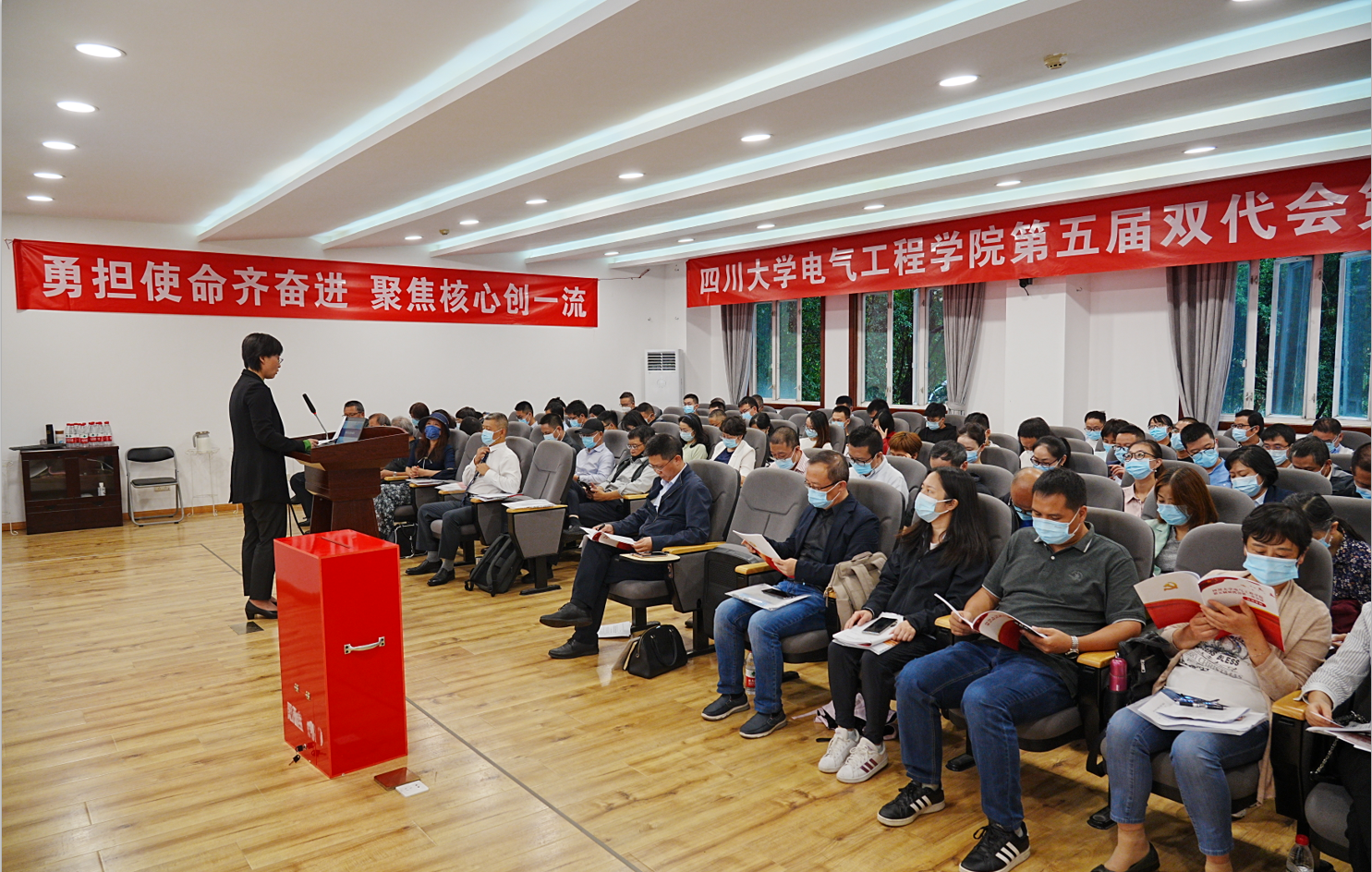 随后,学院党委书记韩芳致开幕词,她对全院教职员工的辛勤工作表示衷心感谢,并表示,当前学院正处于高速发展阶段,需要大家不断总结,不断优化,久久为功。最后她提出三点希望:希望新一届“双代会”代表秉承优良传统,认真尽责;希望党员干部强化政治担当,率先垂范;希望全院师生,步调一致,同向发力,以积极昂扬的精神面貌和良好的工作业绩迎接党的二十大胜利召开。