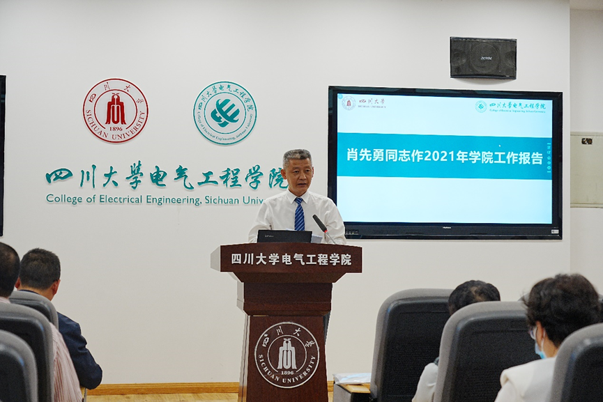 院长肖先勇作2021年学院工作报告。在报告中,肖院长回顾和总结了2021年全院工作,并提出下一阶段工作重点。他讲到,过去一年,学院坚持以习近平新时代中国特色社会主义思想为指导,以教师发展和学生发展为中心,认真落实立德树人根本任务,以高质量党建引领学院事业高质量发展,在确保新冠疫情常态化防控的同时,实现了“十四五”和第二轮“双一流”建设的良好开局,在党建事业、人才培养、科学研究与学科发展等方面成绩卓然,全院师生自豪感、幸福感和成就感进一步提升,开启了学院发展的新篇章。肖院长结合学院实际,提出学院下一阶段建设发展工作总思路,指出学院将在师资队伍建设、科学研究发展、人才培养质量、治院办学能力等方面继续不懈努力、争创一流。