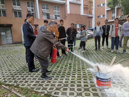 培训首先列举近年发生的多起消防安全事故,然后结合学院特点讲解了实验室日常防火工作开展,预防火灾发生,救人、自救等内容。讲座完后开展了实地灭火训练,让师生熟悉火灾现场应急疏散方法,熟练掌握火灾现场灭火常用的干粉灭火器性能和使用方法。