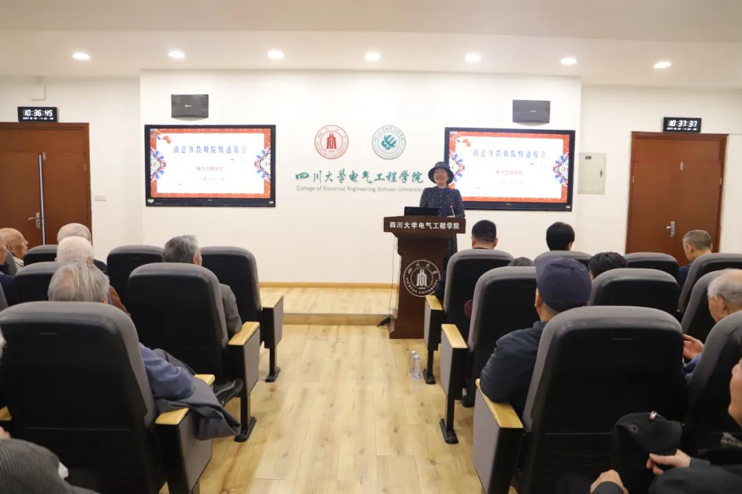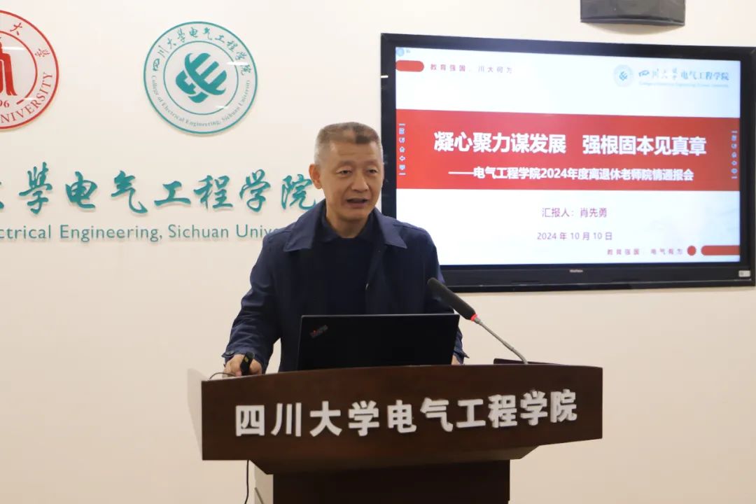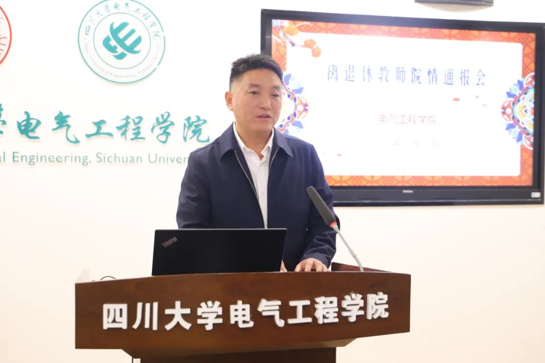 会上,肖先勇院长代表学院向一直以来关心和支持学院发展的离退休教师们表示衷心感谢,并以“凝心聚力谋发展 强根固本见真章”为主题通报了学院发展情况。他从党建事业融合发展、人才队伍建设、科研创新、人才培养等方面汇报了过去一年来学院主要工作进展,分析了当前学院面临的主要问题,介绍了学院未来发展规划。他说,学院每一点进步都离不开前辈们的努力和贡献,希望离退休老同志们能够继续关心和支持学院发展,为打造一流川大电气、推进整体迈向一流贡献智慧和力量。