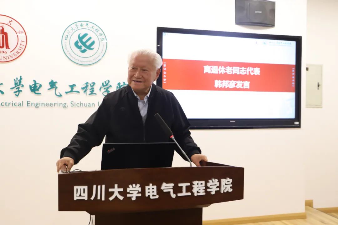 学院杰出校友、四川省人民政府原副省长韩邦彦同志代表离退休老同志作了发言。他对学院近年来特别是过去一年在科学研究、人才培养、教学成果等方面取得的丰硕成果表示高度肯定,他充满深情地回顾了当年在学院的学习、工作经历,以及与同事们朝夕相处、共同奋斗的点滴故事,同时为学院今后实现高质量发展提出了宝贵的意见和建议。