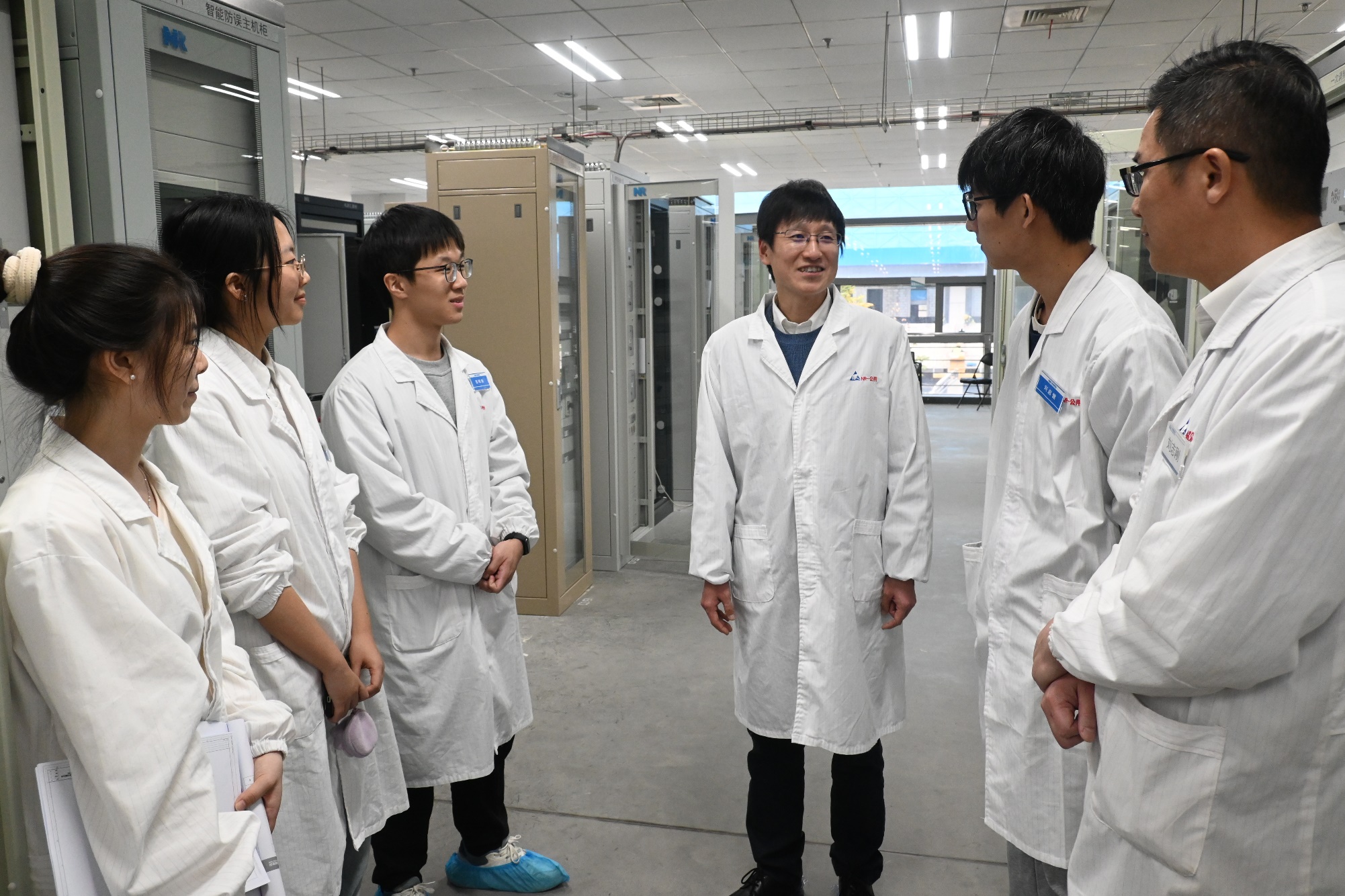 在南瑞继保工程试验仿真基地,工程服务中心主任周敬介绍了公司围绕学生实际需求设计的实习内容、进度安排以及取得的主要成效。赵昱辉与正在公司开展实习的卓工班学生进行了亲切交流,详细询问了同学们的实习情况、收获体会和生活情况。同学们对学院和南瑞继保提供此次宝贵的实习机会,以及精心的组织安排表示感谢。他们说,通过为期两周的现场实习,不仅对课堂所学理论知识有了更深体会,更对工程实践应用、产业技术发展有了更直接的感受,拓宽了自身的学术和工程视野。