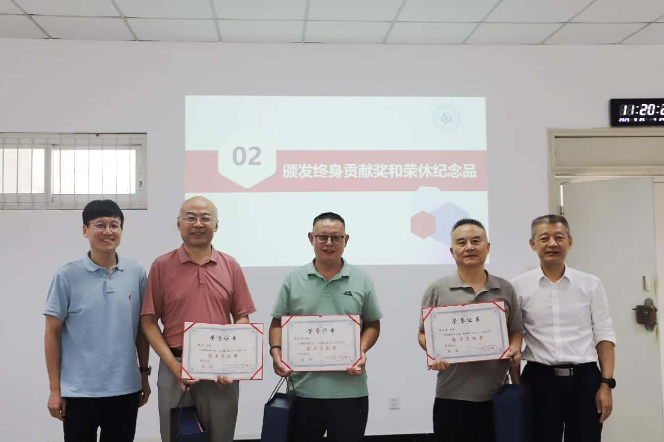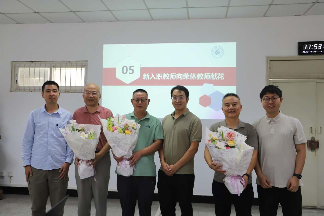 张英敏副书记在主持仪式时回顾了荣休老师们在学院的执教历程,细数了他们数十年教书育人的耕耘与贡献。赵昱辉书记、肖先勇院长为荣休教职工代表冉立、杨昌荣和周文兵老师颁发了终身贡献奖和荣休纪念品。新入职教师代表为荣休老师献上了鲜花。