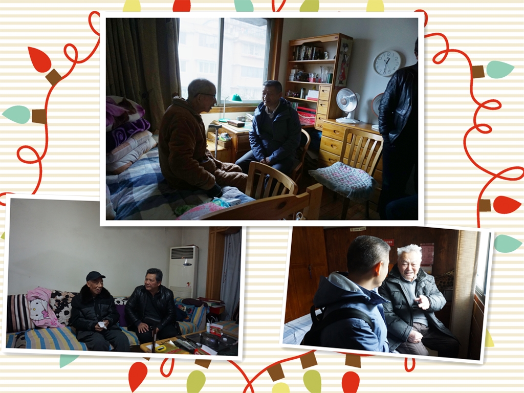元旦节前夕,学院开展“岁末年终送温暖”活动。院长肖先勇带队,工会主席黄顺良、党政办主任曾立渊和工会委员杨昌荣老师一起走访慰问了我院退休教师张道泉老师、范锡普老师、陈廷章老师和李新良老师等,送上学院对他们新年的祝福,祝愿老教师们在新的一年健康快乐,福寿安康。
