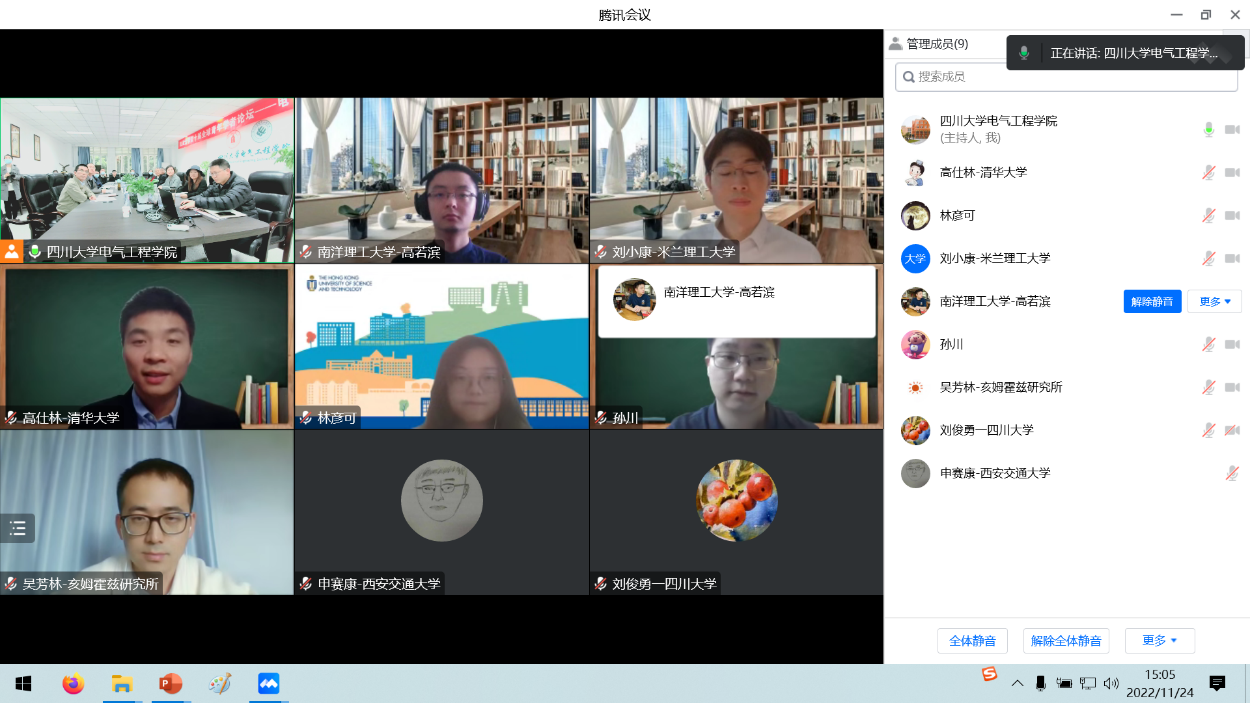 2022年11月24日下午,来自德国亥姆霍兹研究所、南洋理工大学、米兰理工大学、香港理工大学、香港科技大学、清华大学等国际一流名校的6位青年学者应邀参加了四川大学第十届全球青年学者论坛——英国上市公司365分论坛。论坛以腾讯会议方式举行,学院领导,教授委员会主席、副主席,学院系中心干部和教师代表线下参会,论坛由学院党委书记韩芳教授主持。