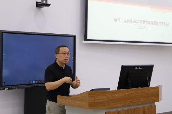 2020年9月1日上午,学院2020-2021秋季学期零周教学工作会暨新学期工作布置会在基础教学楼C202教室举行,学院全体领导、院系中心行政全体干部、各系中心全体教师、全体辅导员参加了本次会议。结合教育部《高等学校课程思政建设指导纲要》,以及对本科人才培养的新形式和新要求,会议第一主题确定为“‘工科类专业课程思政建设’报告与交流”,由教务处副处长兰利琼教授和马克思主义学院胡芳教授做主题报告。同时,会议第一时间传达了学校2020年下半年新学期工作布置会精神,并对学院下半年的重点工作进行了安排。