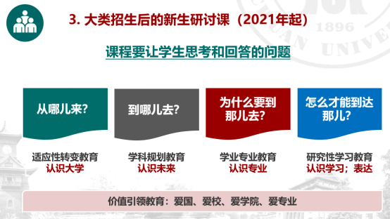 九月的校园又迎来了一批年轻稚嫩的新面孔,他们还没有褪去中学生的青涩,内心充满了对大学生活的好奇和对知识的渴望,将在这里开启新的人生篇章。此时的他们对未来无限憧憬却又对未知心怀忐忑。一切皆有可能,一切都还迷茫,班主任制度和新生研讨课程正是帮助他们找准航向、教会他们独立思考努力奋斗的有效方式和重要途径。