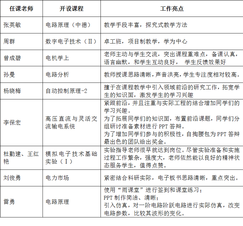 不足之处:大部分课程教师仍然是以讲授为主,互动较少,后排个别同学不听讲,学生专注度不够集中。专业实验课主讲老师参与度较低,学院应重视实验教学的保障和实施可持续性。