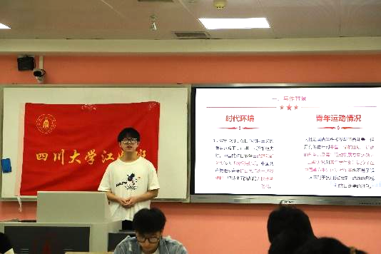 习近平总书记指出“要把读马克思主义经典、悟马克思主义原理当作一种生活习惯、当作一种精神追求,用经典涵养正气、淬炼思想、升华境界、指导实践。”在经典导读环节,四川大学青马工程弘毅班宋馨月同学首先带领大家研读了马克思的《<政治经济学批判>序言》,她通过分析马克思在政治经济学领域的研究经过,将马克思的思考批判过程进行剖析,为同学们更好地理解原文提供了帮助。戴昌龙同学针对《青年运动的方向》展开论述,分别从中国革命的本质、过去革命的经验教训、青年的作用等方向提炼了毛泽东同志原文的关键部分,帮助大家汲取其中蕴含的宝贵经验和精神“营养”。随后,李洋同学带领大家研读《反对本本主义》,他结合自身成长感悟就“没有调查,就没有发言权”这句话分享了自己的见解,提出无论在理论还是实践中都需要通过调查去解决问题。在读书会现场,同学们共同观看了红色经典《红岩》视频,对中国革命的艰苦有了更深的认识。