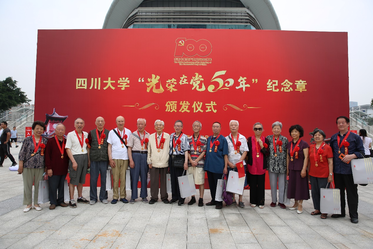 本次颁奖仪式隆重热烈。四川大学党委副书记、纪委书记张卓代表学校逐一为学院老党员颁发“光荣在党50年”纪念章,并与他们亲切握手,表示热烈祝贺和崇高敬意,向他们在不同时期为党的事业和学校改革发展稳定作出的积极贡献表示感谢。熠熠生辉的纪念章饱含着党组织对老党员们的关怀,是对老党员们的集体致敬和最高礼赞。