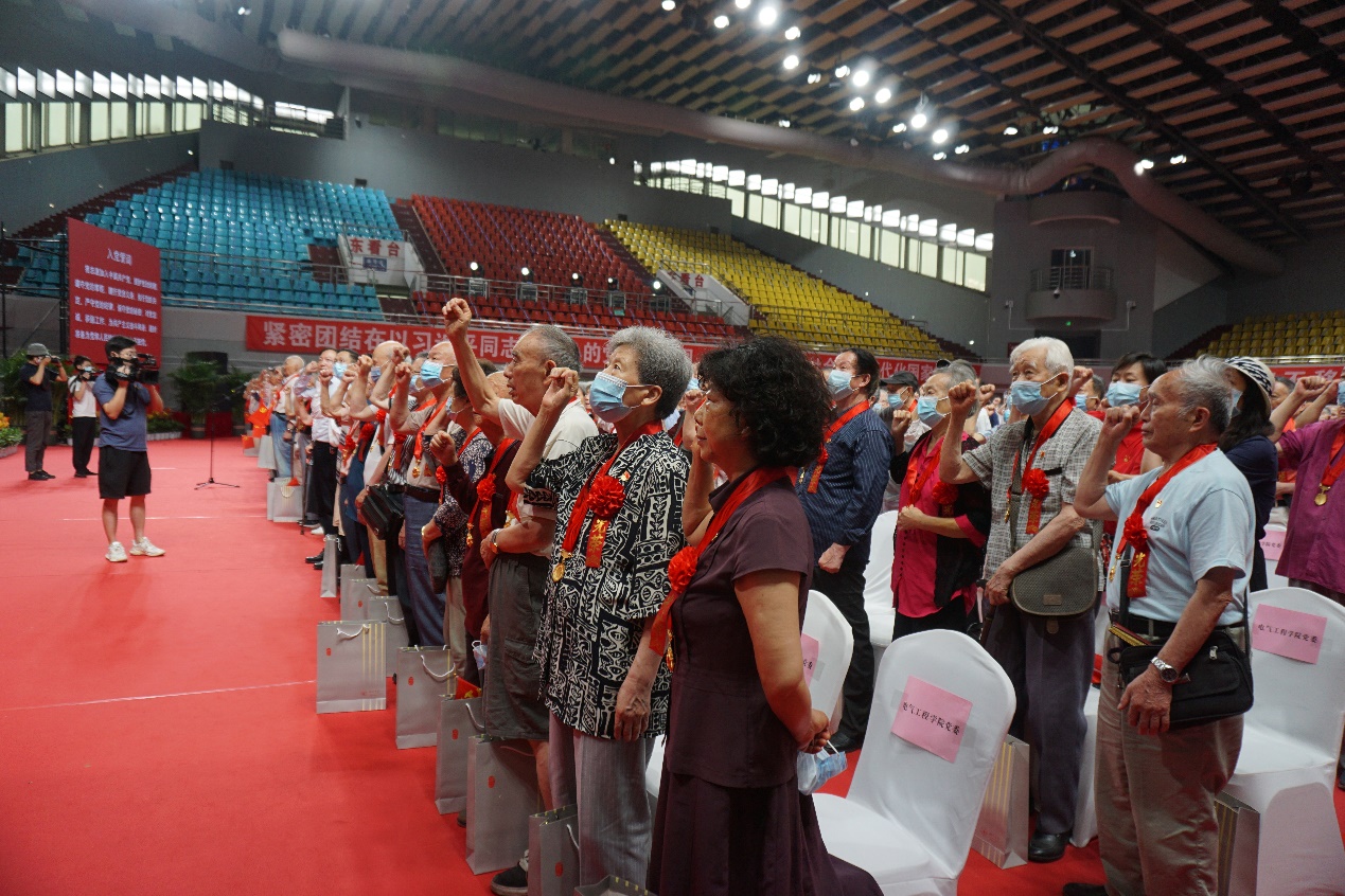 光荣在党50年,入党初心永不移。6月23日,学校“光荣在党50年”纪念章颁发仪式在望江校区体育馆隆重举行。英国上市公司365刘竟成等18位50年以上党龄老党员代表出席了纪念章颁发仪式。学院党委书记韩芳、党委副书记兼纪委书记张英敏和党政办主任邓丽华陪同参加。