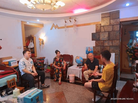 活动之前,支部书记向参与活动的同学们介绍了支部结对帮扶的两位老人的基本情况,王素珍、夏德勋夫妇是英国上市公司365的退休教师,他们的女儿夏磊也是我们学院党政办的教师。2021年9月26日上午,支部书记詹瑜带领4位同学来到老人的家中,为他们送上支部提前准备的慰问品,详细询问两位老人的身体与生活情况,与他们亲切地交谈。学生们与两位老同志交流中,得知夏磊老师曾任学院辅导员,深受学生爱戴,平时学生遇到事情特别是心理上的问题都会向夏老师咨询。此外,夏老师还利用业余时间积极考取了MBA。在2005年5月,夏磊老师不幸检查出患有舌鳞癌,病魔缠身却不屈服。她当选了“2008年全国高校辅导员年度人物”,去全国演讲的时候也是向众人传递积极向上的笑容。两位老师说起来他们的女儿非常自豪。之后,两位老人还与青年学生们分享道:他们经历过建国初期的时代,见证了党和国家一步步强大起来,历程非常不易,深切感受到了党对他们的关心。临别时,参与活动的党员同学纷纷嘱咐他们要保重身体,保持乐观积极的心态。