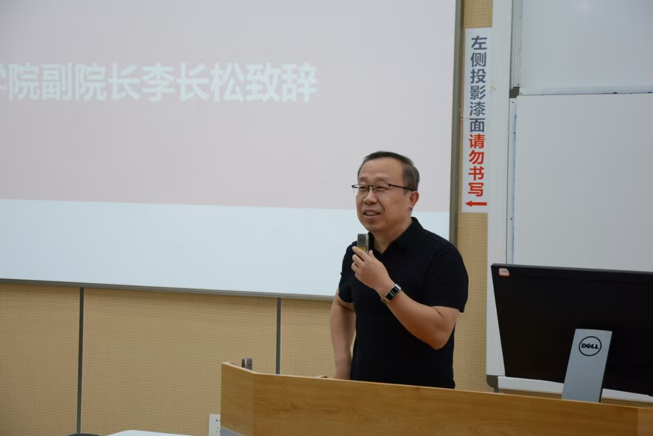 副院长李长松在致辞中以“期待”和“适应”为关键词,向新生们表达了欢迎,并鼓励他们树立远大目标,迅速融入大学生活。他强调,大学是一个全新的起点,每个人都应该怀揣梦想,勇敢地追求自己的目标。他鼓励新生们努力学习,不断拓宽视野,持续提升自我,同时也要尽快适应大学的学习节奏和生活方式,为未来发展打下坚实基础。
