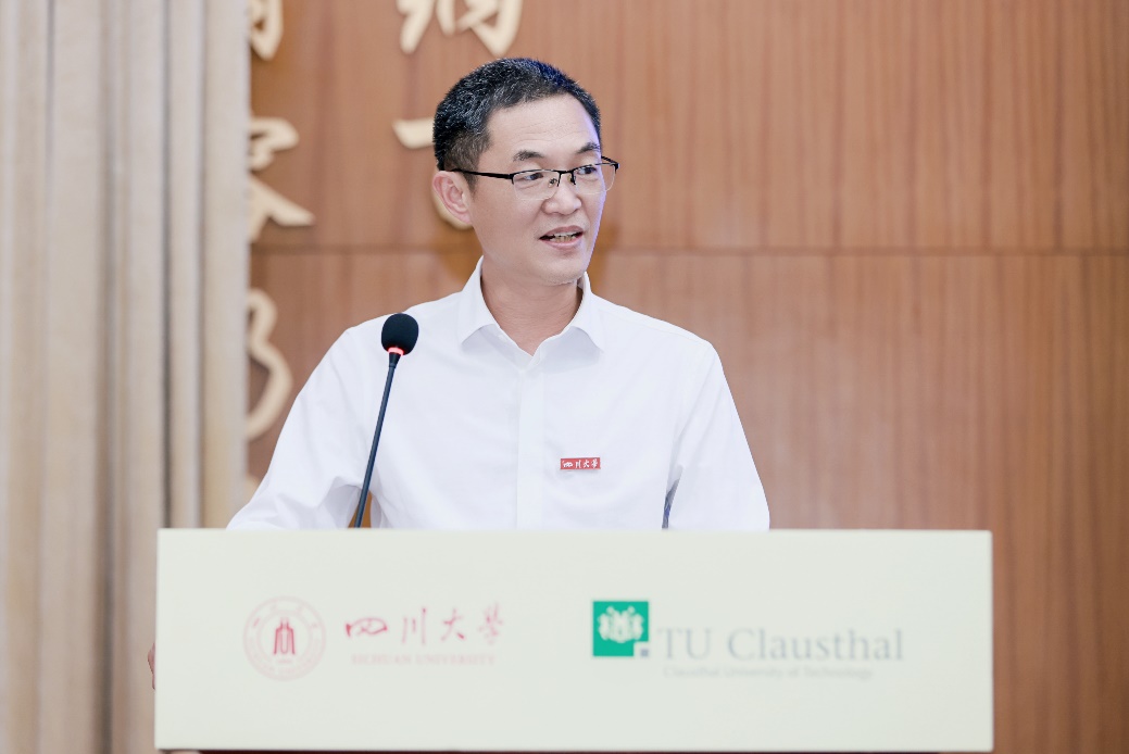 四川大学副校长赵长生代表学校向中德班全体毕业生表示祝贺,向中德双方教师和管理团队表示感谢。他说,电气中德合作办学项目是学校国际化人才培养的一项重要探索,首届中德班学生的顺利毕业标志着两校合作模式取得了阶段性成果,也为学校深化国际教育合作积累了宝贵经验。同学们在四年学习中不仅掌握了扎实的工程知识,还通过赴德交流,拓展了国际视野,提升了跨文化沟通能力与创新能力,整体综合素养显著增强。他勉励毕业生们要坚持终身学习,持续提升自我;要秉持社会责任,服务时代需求;要不断开阔视野,促进交流合作。他祝愿每位毕业生前程似锦,祝愿电气工程中德合作办学项目结出更多硕果。