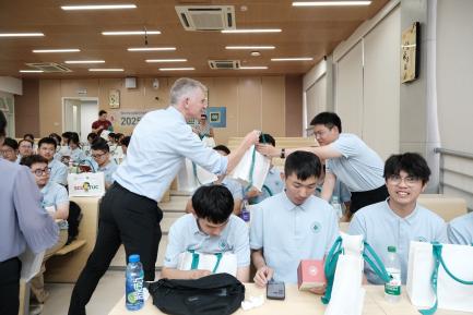 班主任代表刘一奎老师以“be patient, be optimistic, be open-minded, be kind”寄语新生。他鼓励同学们保持耐心、积极乐观,敢于面对学术挑战与生活波折;同时保持好奇、开阔视野,把握时代科技发展脉搏;更要以善良和信任构建长久的人际关系,在大学四年中收获成长与友谊。