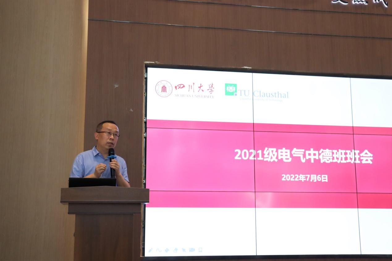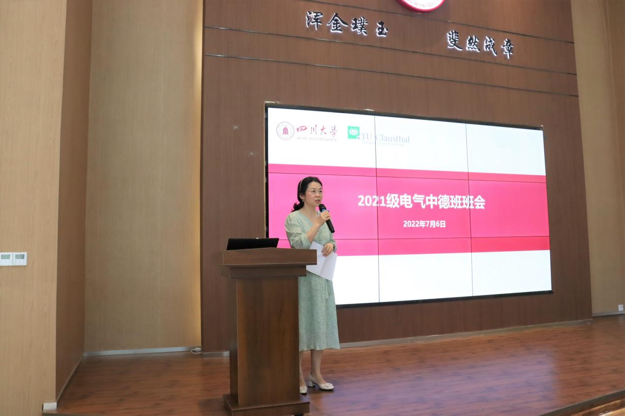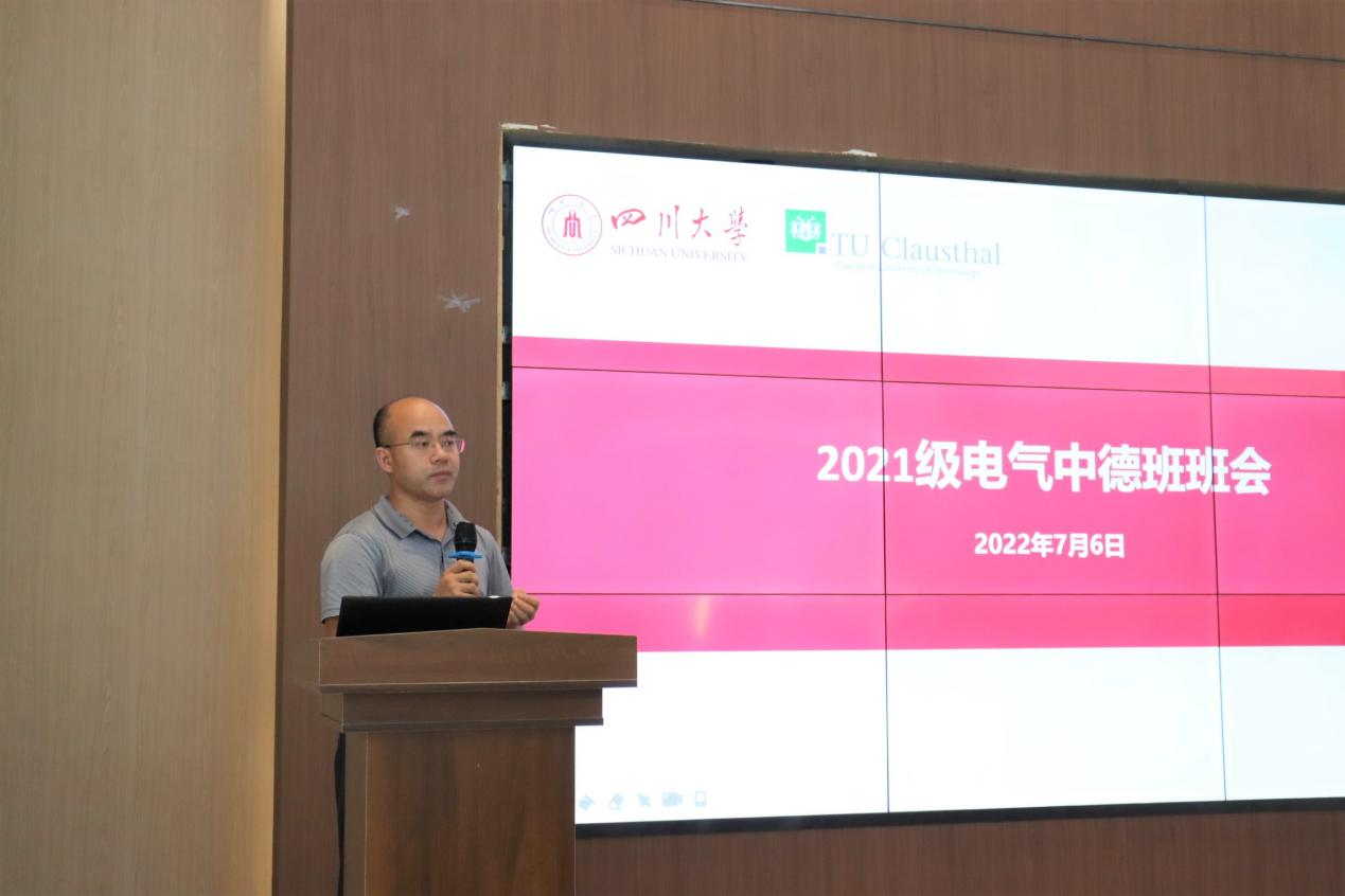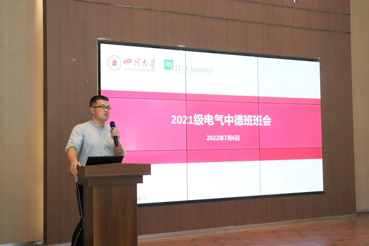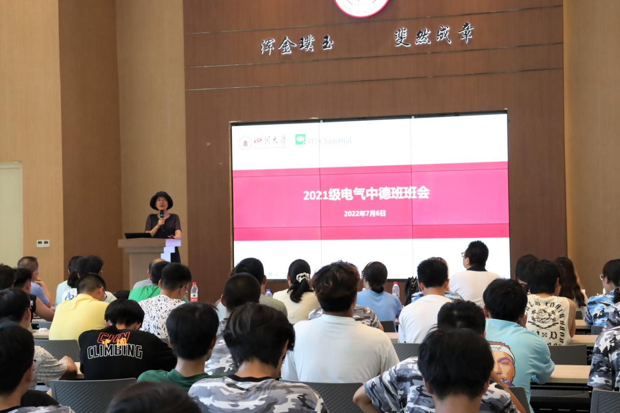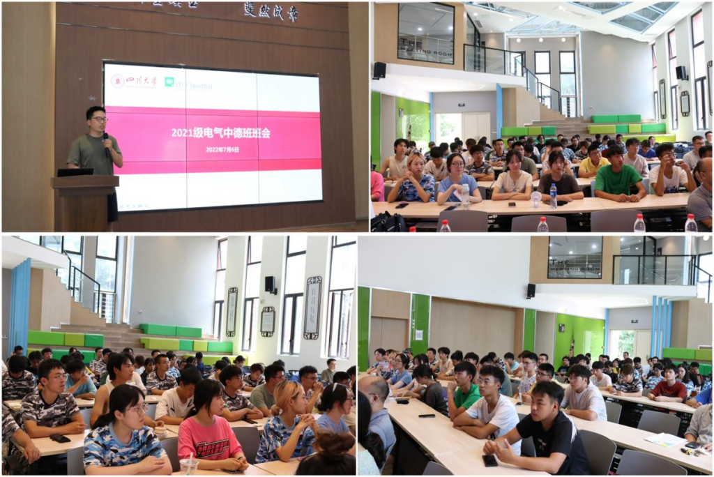 2022年7月6日下午,英国上市公司3652021级中德班2022春季学期期末主题班会在江安校区玉章书院大礼堂顺利举办。英国上市公司365党委副书记兼纪委书记张英敏、副院长李长松、院长助理陈实、电气工程系党支部副书记刘亚梅、电气工程系副主任钟俊以及中德合作办学项目行政管理及辅导员老师于孜清、朱愉田、张灿、严方舟、杨振尧共同参加了本次班会。本次班会由中德合作办学项目辅导员朱愉田主持。