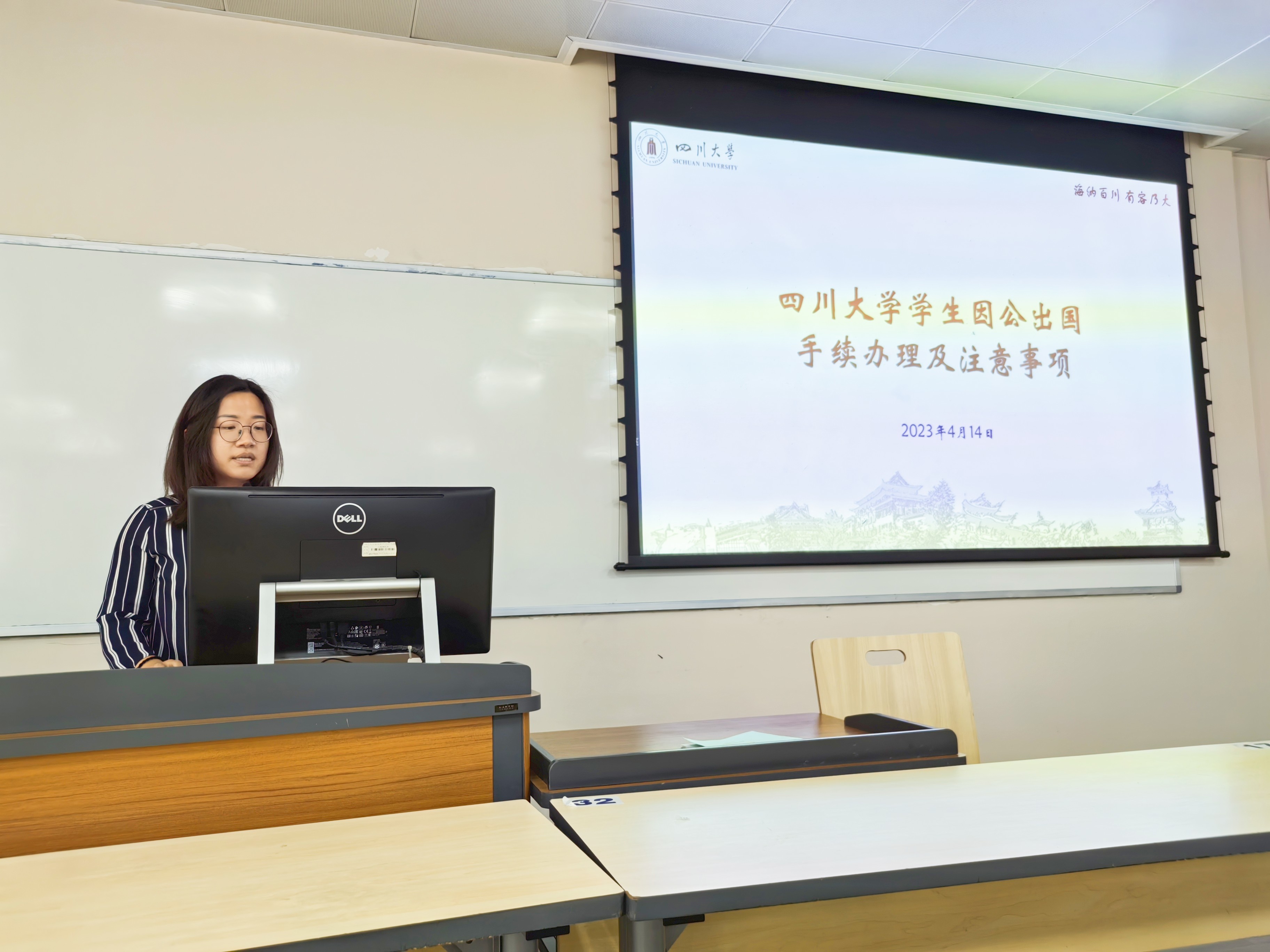 首先,梁平老师介绍了四川大学学生因公出国手续办理及注意事项,说明了“四川大学学生出国(境)备案系统”备案手续,强调了出国注意事项及外事纪律,并祝同学们在德期间平安学习、一切顺利。