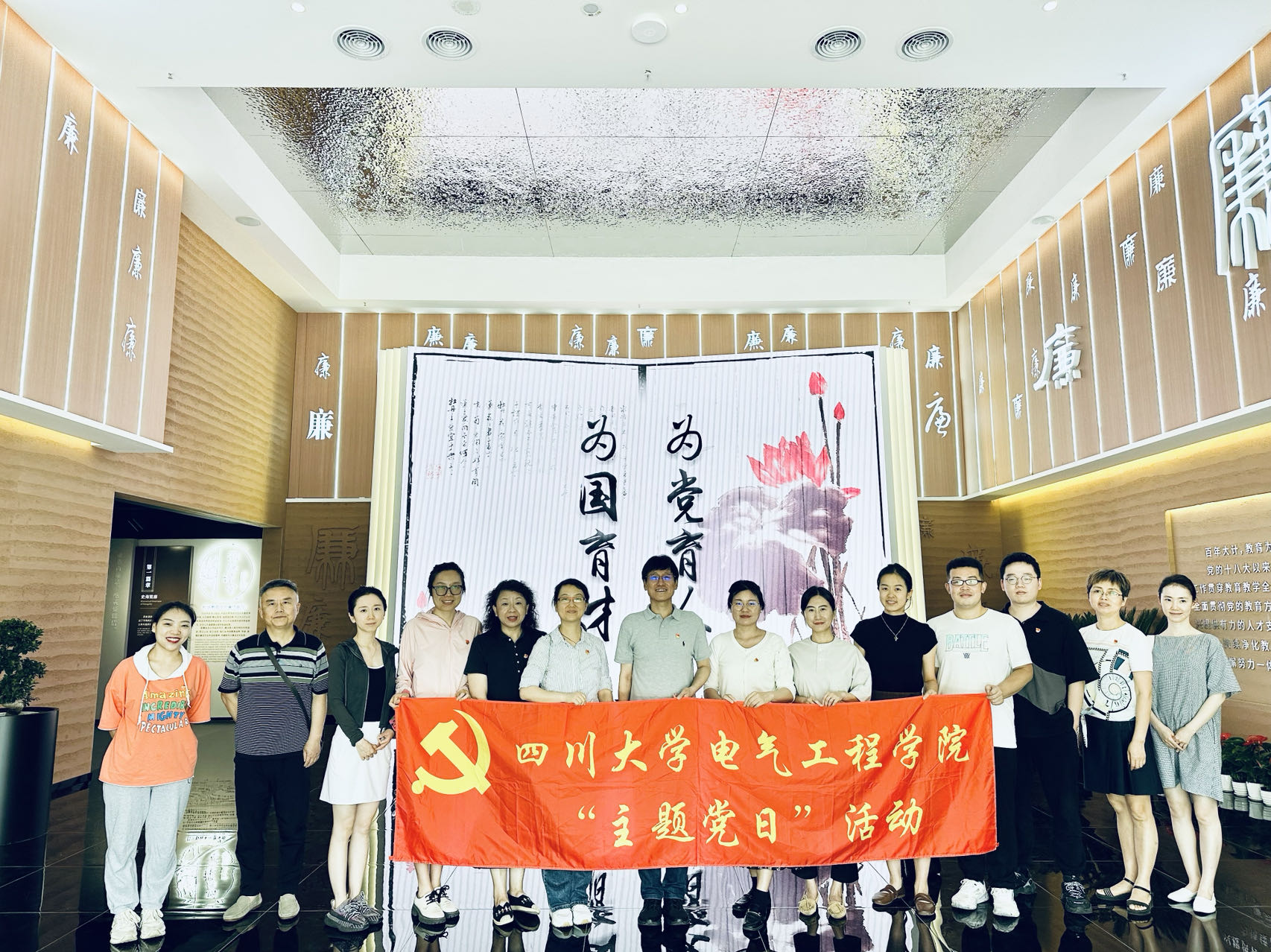 廉洁奉公树立新风,是学习贯彻习近平新时代中国特色社会主义思想主题教育的具体目标之一,为更好树立求真务实、团结奋斗的时代新风,持续营造风清气正的良好环境,2023年6月9日下午,我院行政党支部全体党员前往四川省高校廉洁文化教育基地“育廉馆”参观学习,开展“树清风正气,倡廉洁自律”主题党日活动。学院党委书记赵昱辉以普通党员身份参加了本次活动。