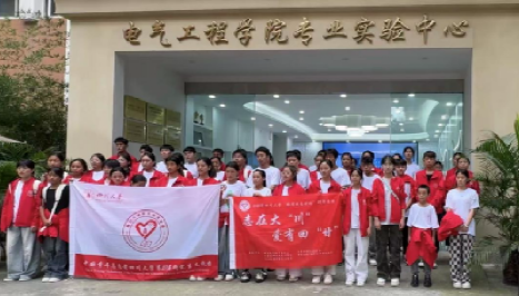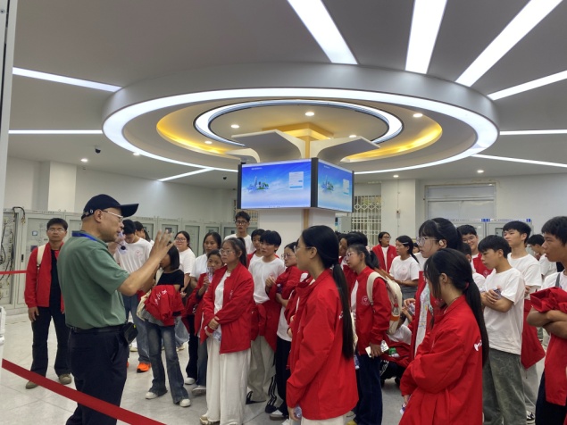随后,同学们依次参观了高电压实验室、新型电力系统与综合能源系统实验室,了解了学院的专业方向以及直流特高压输电、清洁能源、综合能源系统及电能质量控制等先进能源技术的发展趋势。从户外高大陈旧仍不失威严的电气设备,到室内一排排先进智能化电气控制屏,同学们感受到我国电力行业科研人员承前启后、勇攀高峰的拼搏精神,当解说到我国特高压输电技术处于世界领先地位时,现场响起了自豪的掌声。