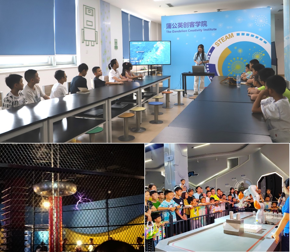 下午14时,研学营正式开始。志愿者邓伊扬作为主持人热情地与学生们交流互动,通过问答的方式不断激发他们对科学的热情,在四川科技馆声光电厅,研学营观察了高压放电的科普展示,随着电弧闪动,学生们更直观地观察了电。在“机器人大世界”,工业机器人“伊娃”灵动的舞蹈及其在密集的杯阵中左穿右绕,运行流畅的“绕杯”表演,赢得了学生们热烈的掌声。