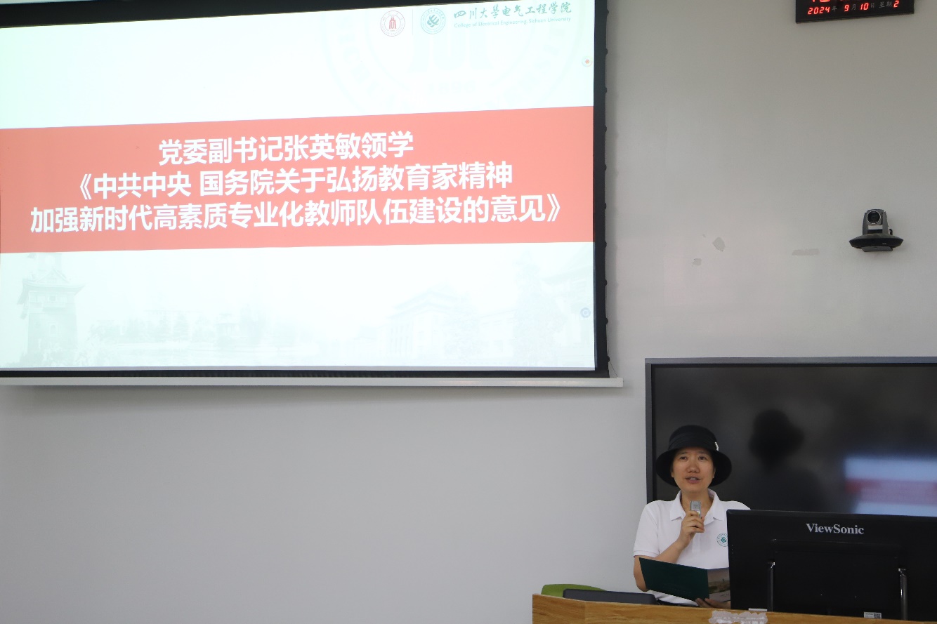 党委副书记张英敏领学了《中共中央 国务院关于弘扬教育家精神 加强新时代高素质专业化教师队伍建设的意见》(简称《意见》),重点解读了《意见》中关于加强教师队伍思想政治建设、涵养高尚师德师风、提升教师专业素养、加强教师权益保障、弘扬尊师重教社会风尚等方面提出的明确要求。她希望,每位教职工都要将《意见》落到实处,将教育家精神融入日常,让教育家精神成为我们的“心之所向”,努力成为有情怀、有水平、有温度的好老师、大先生。