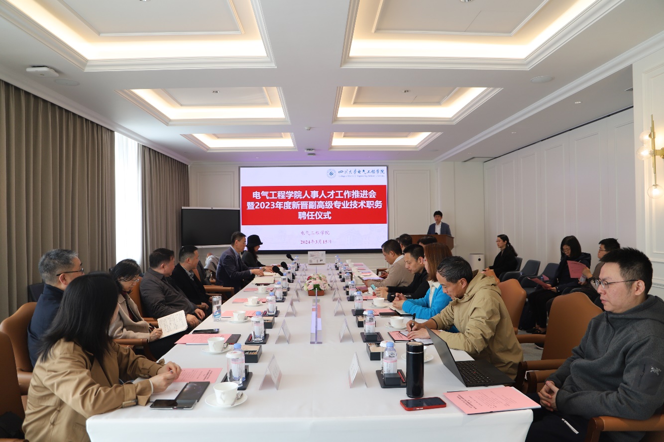 赵昱辉书记首先传达了学校新学期工作布置会关于人才工作以及学校人事人才工作布置会精神,并从全面推进海外引才工作、着力加强青年教师培养、持续深化师德师风建设等方面总结了我院人事人才工作取得的主要进展和成效,通过数据对比深入分析了当前学院人才工作存在的瓶颈问题。他说,2024年学院人事人才工作要突出问题导向、目标导向,始终坚持“人才强院”主战略,坚持党管人才,坚持培引结合,聚焦重点方向,充分依托团队,适度扩大规模,做优人才存量,做大人才增量,努力实现师资队伍顶峰高度、整体宽度、基础厚度的协调发展。