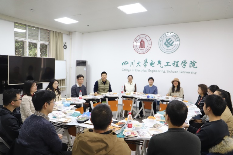 午餐会在温馨和谐的氛围中进行。赵昱辉书记和于孜清副主席分享了赴南瑞集团和南瑞继保访企拓岗,以及看望2021级电气工程及其自动化专业卓越工程师班同学的体会和感受。青年教师们一起围绕卓越工程师培养的关键环节,加强校企合作、产教融合的基本范式,探索有组织、有目标的人才成长路径等进行了深入讨论。