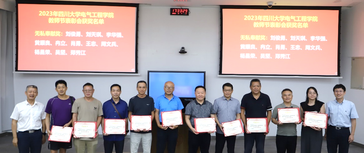 学院“无私奉献奖”获奖教师代表刘俊勇教授在发言中表达了对学院、对所在团队和老师们的感谢之情。他说,自己从教近40年,亲眼见证了学校的快速发展和学院综合实力的显著提升,同时殷切寄语广大青年教师进一步增强对教书育人事业的热爱,对学术科研的追求,立德树人、勇于创新,敢于竞争、追求卓越。