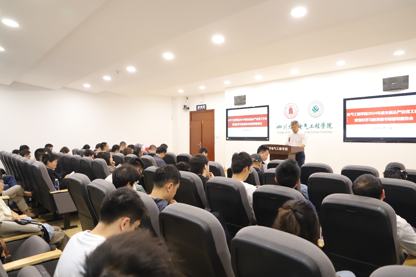 4月23日,学院在基础教学楼报告厅召开2024年度全面从严治党工作会暨党纪学习教育读书班辅导报告会。学院领导班子成员,两委委员,科室、系(所、中心)负责人,党支部书记,在职教职工党员、离退休教职工党员、学生党员代表等参加会议。学院院长肖先勇主持会议。
