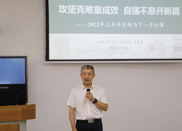会上,肖先勇院长作工作报告。他从聚焦特色重内涵、聚焦重点抓人才、聚焦育人重质量、聚焦科研重成效等四方面对过去半年学院取得的成绩作了全面总结,对学院在高端人才、科研质效、育人成效等方面存在的不足作了深入分析,针对学院下一步发展,他说,根据学校工作要求和学院实际情况,我们修订完善了学院“十四五”发展规划,更加聚焦国家战略,坚守立德树人初心,以学生成长、教师发展为中心,以一流为标准,坚持高质量内涵发展,努力打造立足西部、服务国家、面向世界的能源电气和自动化领域育人中心和创新高地。肖院长还就下学期学科建设、人才培养、师资队伍、科学研究、国际合作以及学院治理体系和治理能力完善等方面作出了具体安排。